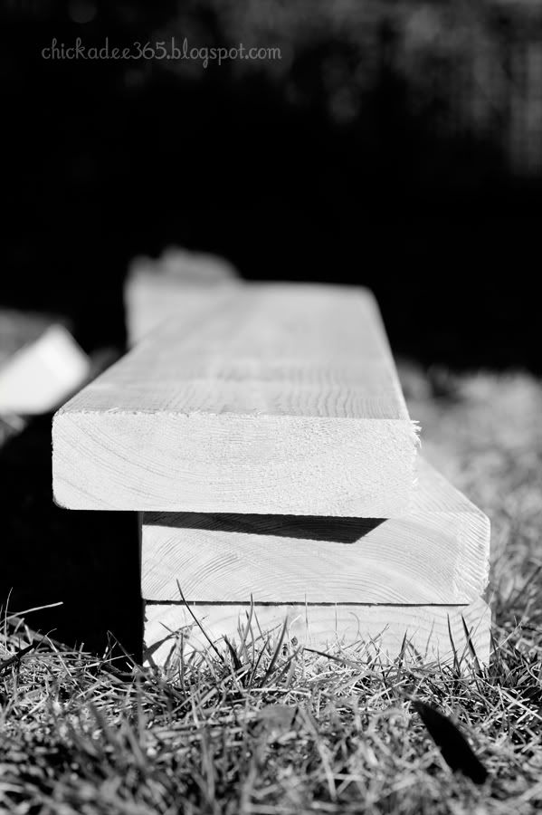 Something's afoot. Rick went out and came home with wood. I wonder... has he been reading my blog? Of course I had to go out and "help." He probably prefers I wouldn't help. I tried really hard to keep quiet. Really, I did. I'm thankful when Rick's in the mood for tools.